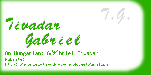 Frequency of TIVADAR name and GABRIEL surname in HungaryThe Tivadar name frequency in Hungary: The name is in TOP Ninety-One most common man name in Hungary. As 1.st name: 0.0388% (Three Thousand Eight Hundred and Eigthy-Two), as 2nd name: 0.0109% (One Thousand and Ninety-One) man have this name.. Gabriel surname frequency: 38 What English words can be put together from characters of the name?